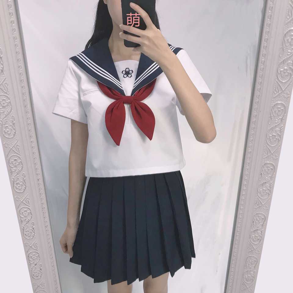 正統基礎jk制服櫻花刺繡學生裝女短袖日本校服學院風套裝水手服